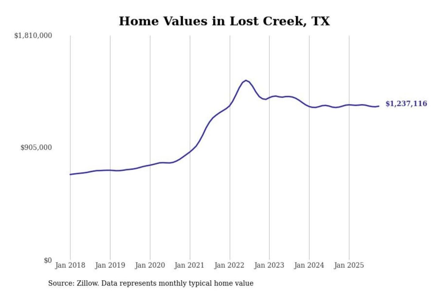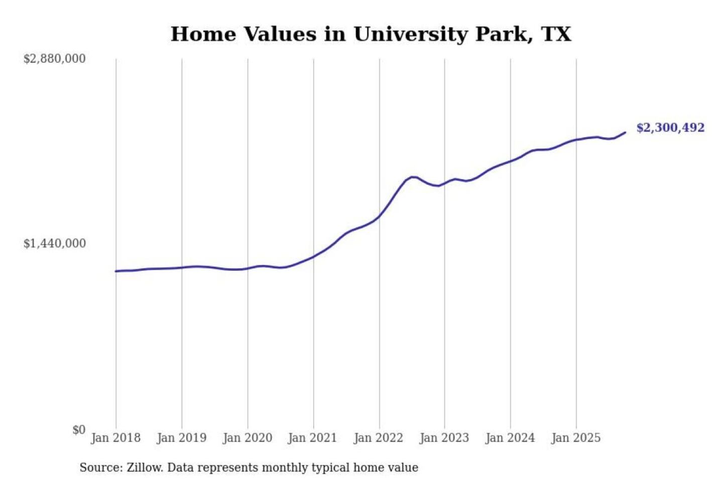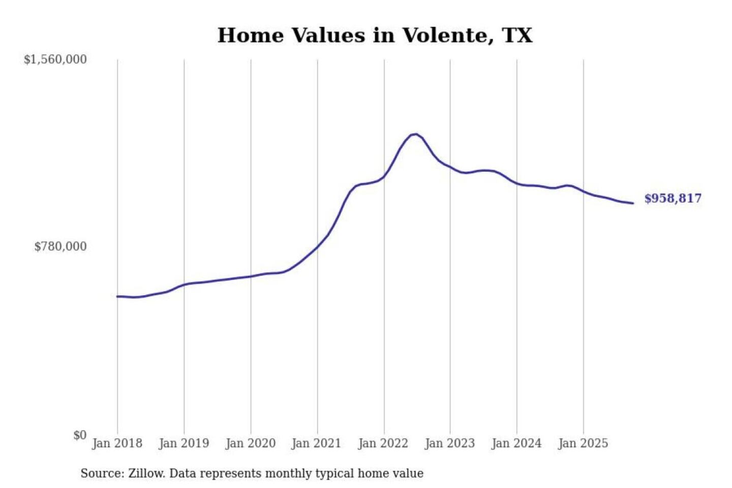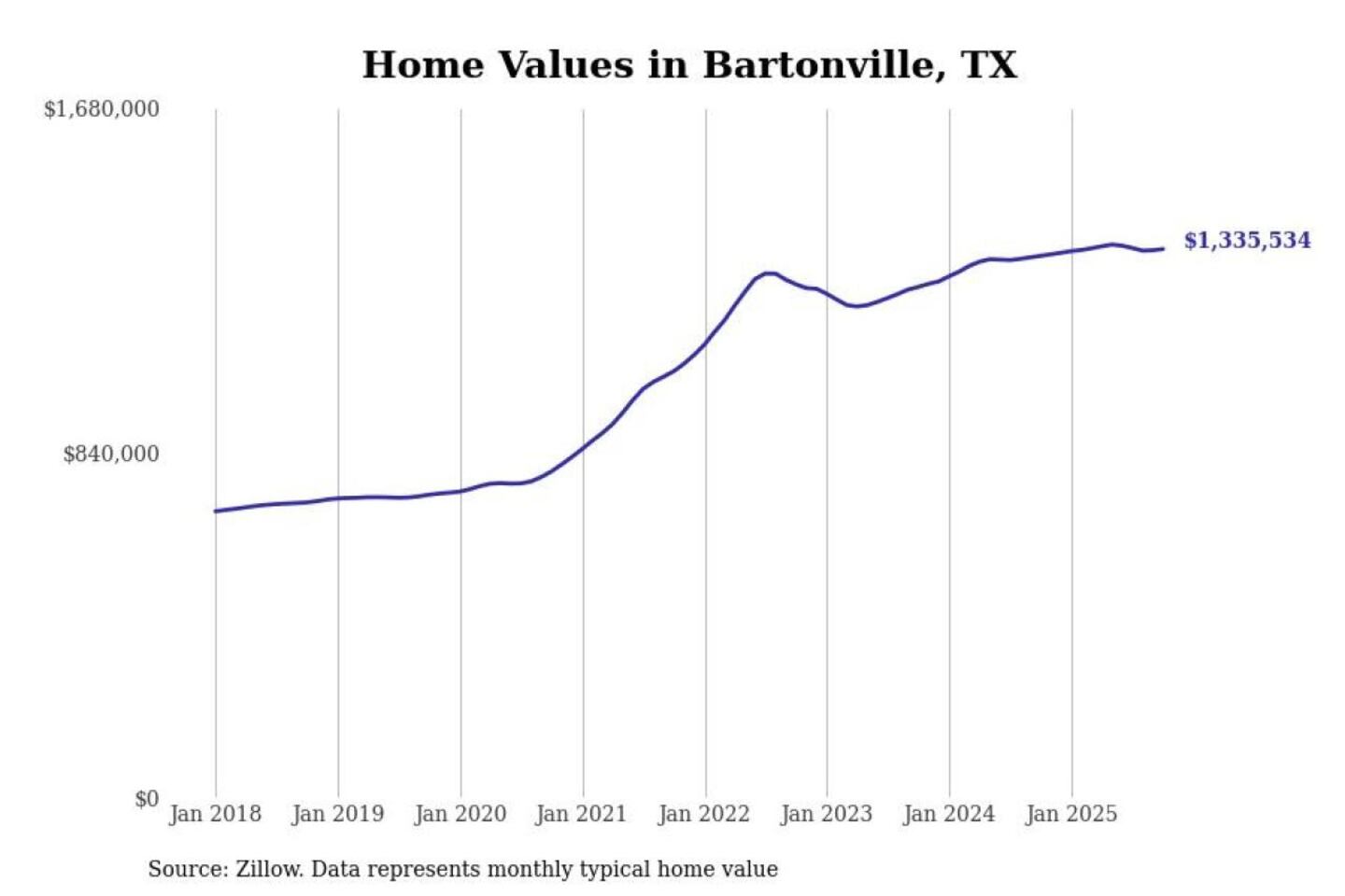Stacker compiled a list of cities with the most expensive homes in Texas using data from Zillow. Cities are ranked by the Zillow Home Values Index for all homes as of October 2025. The charts in this story were created automatically using Matplotlib.
