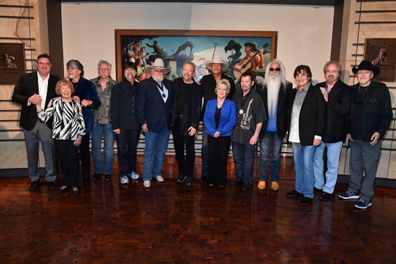 Alan Jackson through the years NASHVILLE, TN - APRIL 05: 2017 Country Music Hall of Fame Inductees Songwriter Don Schlitz and Recording Artist Alan Jackson pose along with existing Hall of Fame members during the 2017 Hall of Fame Inductees Announcement where Alan Jackson, Jerry Reed and Don Schlitz were announced to become 2017 inductees at The Country Music Hall of Fame on April 5, 2017 in Nashville, Tennessee. (Photo by Jason Davis/Getty Images) (Jason Davis/Getty Images)