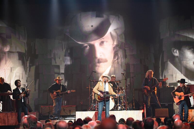 Alan Jackson through the years Alan Jackson performs at the 51st Annual CMA Awards, hosted for the 10th year by Brad Paisley and Carrie Underwood, on Nov. 8, 2017. (Image Group LA/Disney General Entertainment Content via Getty Images)